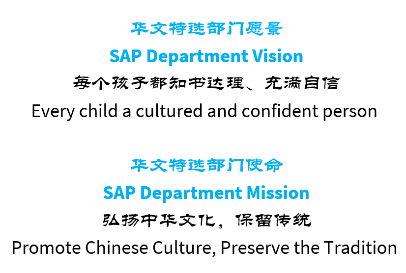 作为特选学校,圣婴小学始终致力于培养学生中英双语兼通,中西文化并重,使学生对华文有更深的认识,对华族文化有更大的热忱。通过结构化的表演艺术旗舰课程(包括快板课程和华族戏曲,学生能够深濡其中,旨在培养他们对表演艺术的欣赏能力及其语言表达上的信心。通过武术、围棋、茶艺、书法、水墨画和传统中医等文化艺术课程模块,学生的语言表达能力得以支撑、展示及提高。